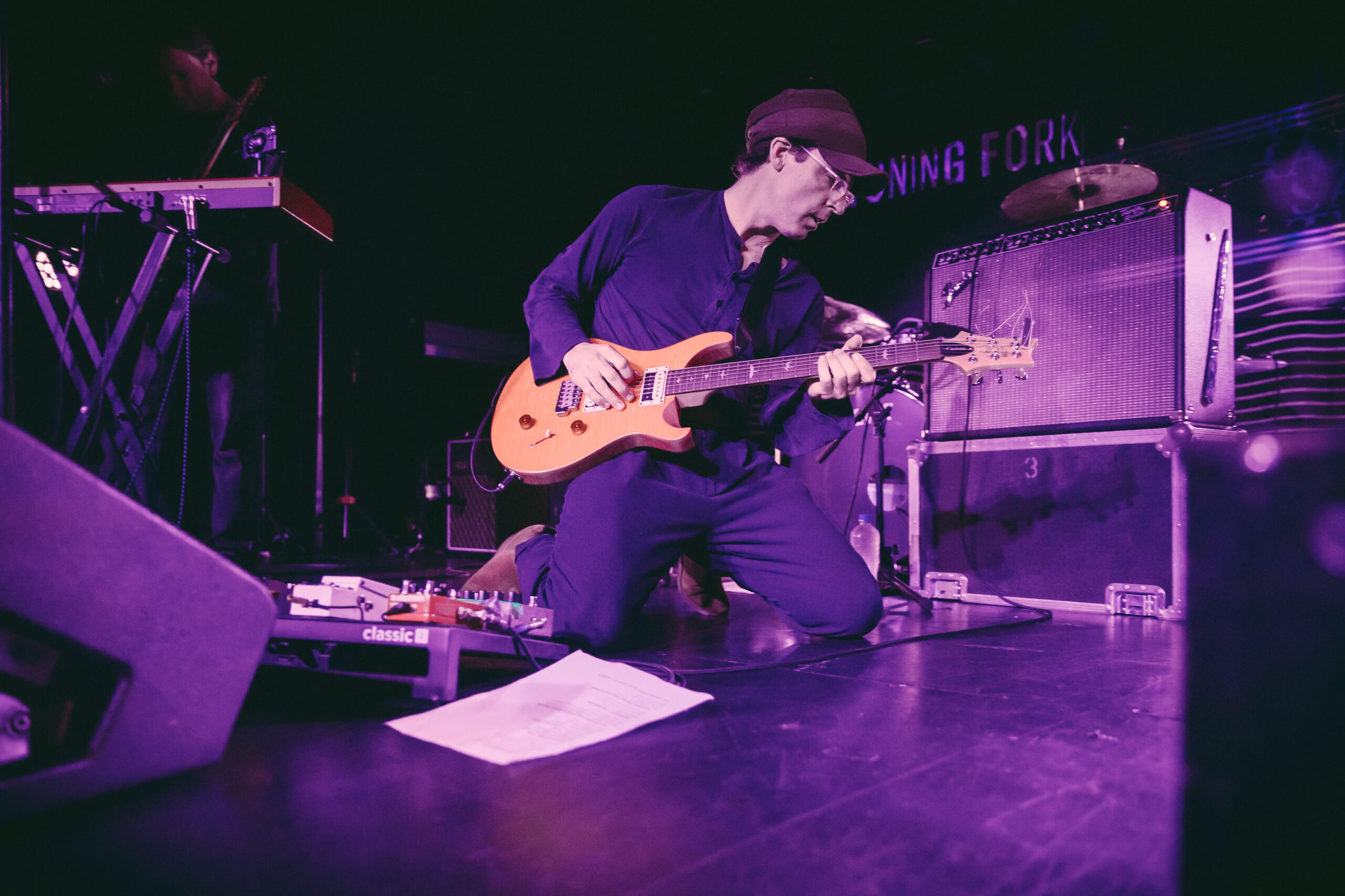 Once the “album” part of the show is over, we get “a funny song” – a (not remotely actually funny) cover of Johnny Thunders’ You Can’t Put Your Arms Around a Memory, followed by a grab-bag of songs from the band’s extensive back catalogue. After a very brief encore-turnaround, there’s a sincere but ultimately abandoned attempt at a cover of Chris Knox’s Not Given Lightly. Alec has printed the lyrics out, but the poor light and his glasses means it’s hard for him to sing and play at the same time. There are shouts of encouragement from the crowd, but ultimately it collapses into chaos. A pity, although everyone sees the humour in it, and he ends the set with one of his own songs.