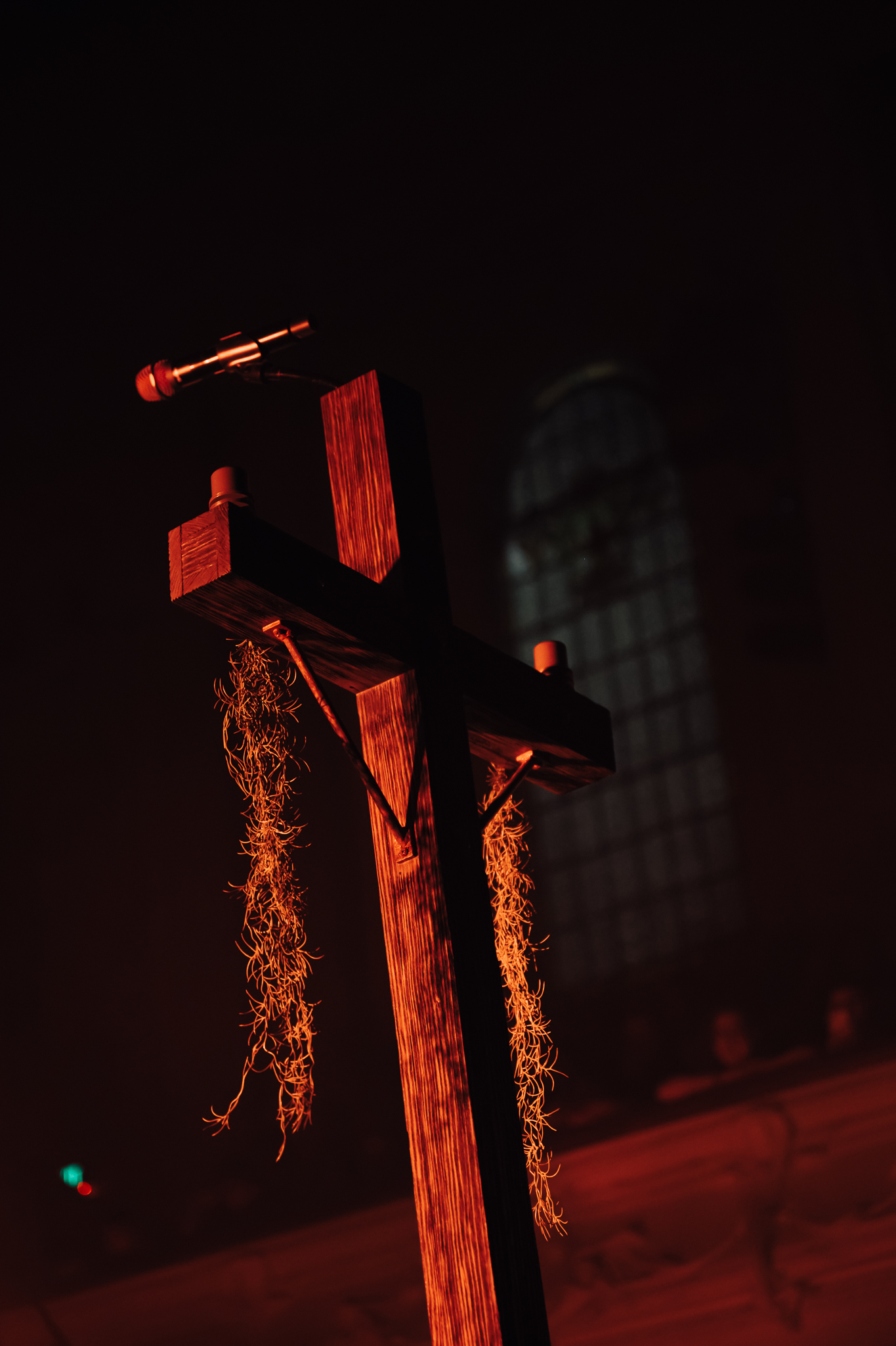 It’s just after 9pm when Cain and co. emerge from the thick cloud of dry ice that is going to be a constant for the bulk of tonight’s gig. The four piece band is evenly spaced out around the edges of the stage and, in keeping with Cain’s Southern aesthetic, in the centre of the stage is what can only be described as a pulpit – an elevated platform bearing a massive cross. Cain bounds out onto the stage, her long hair held back by a baseball cap, wearing baggy jeans, an even baggier tee shirt and a pair of combat boots. And it’s straight into Sunday Morning from the Golden Age EP, all drone and martial drumming, followed immediately by bona-fide hit American Teenager. The remainder of the show follows this pattern, mixing extended pieces of droney, Southern Gothic shoegaze with (slightly) poppier material.