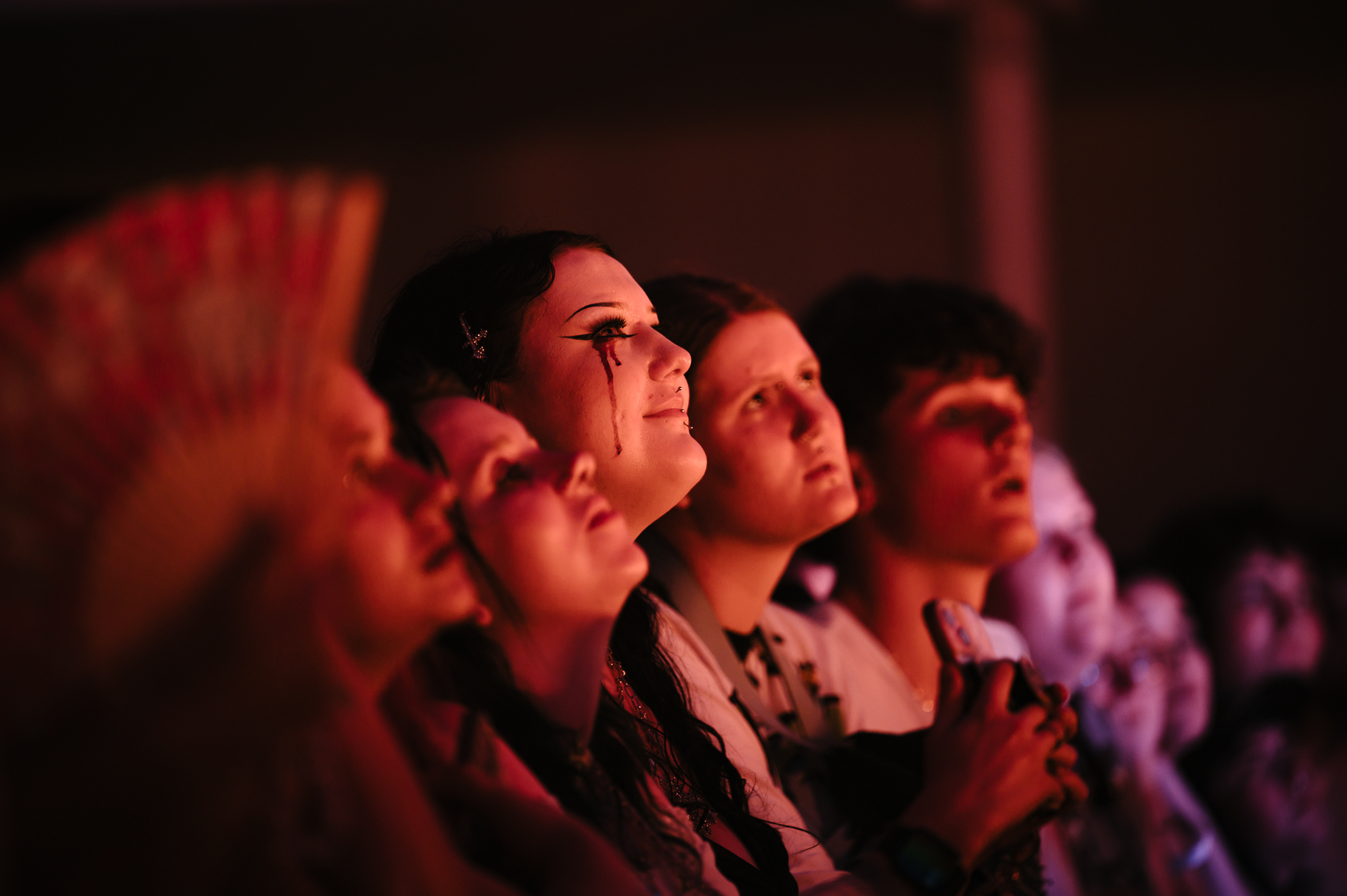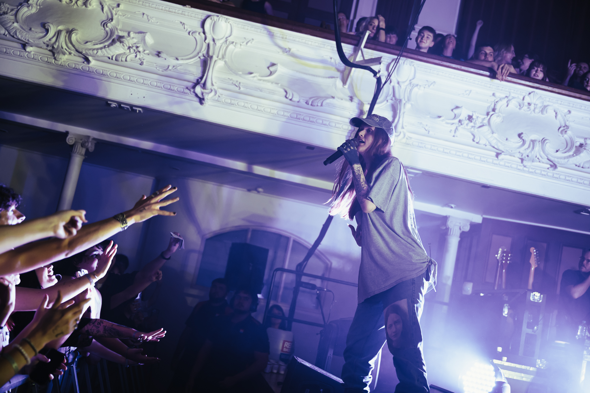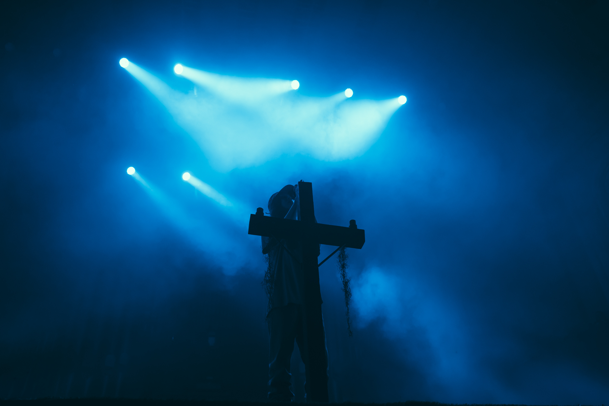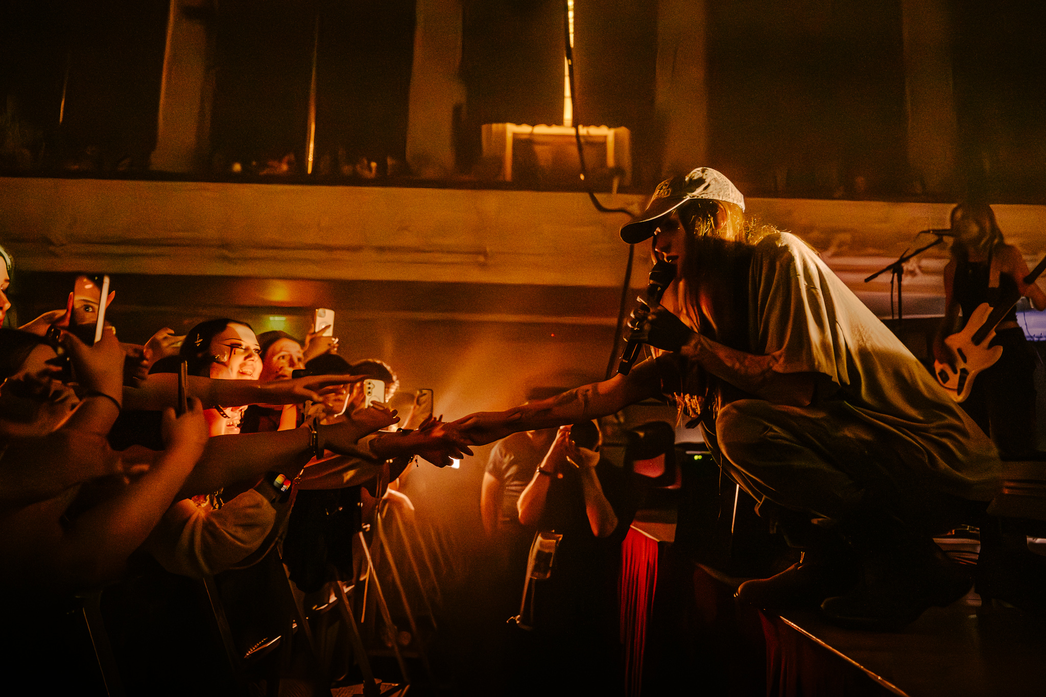 Cain’s music – a few killer singles like American Teenager and Fuck Me Eyes excluded – is mostly all about “the vibe”. It’s dark and murky, like floating in some kind of sensory deprivation chamber (or, as Radiohead put it, “like a pig in a cage on antibiotics”.) The stage setup reflects this – it’s mostly dark, the colours are muted to the point where you could fool yourself into thinking you’re watching an old sepia-toned film, and the dry ice never lets up. This all sounds kinda gloomy on paper, but Ethel Cain seems genuinely excited to be here – it’s the band’s first live show in months – and when she’s not roaming the stage she’s down in the pit or holding her mic out over the audience for call-and-response vocals.