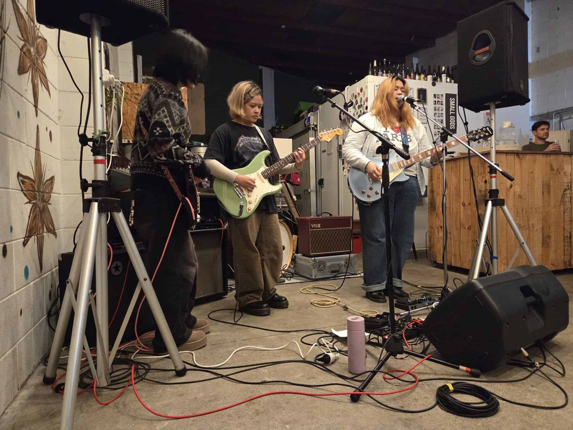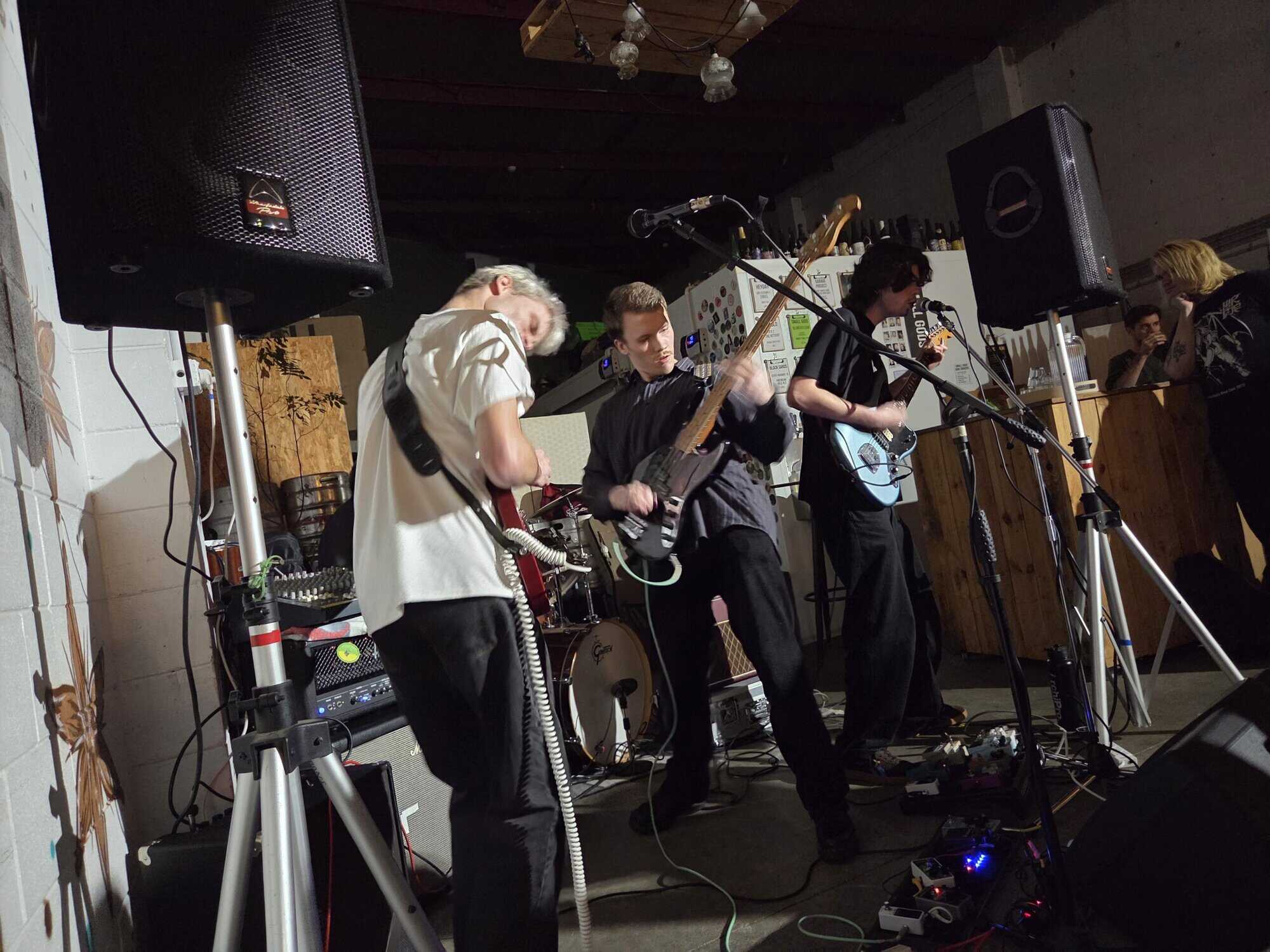 Snuggled in the corner, a taproom, fitting 50 maybe 60 people, a great range of craft beers, no stage, small PA, an intimate space… aroha at first sight. Three bands tonight, one seen before, one also heard of, another an unknown, likely all toru are traversing punk: taking, mimicking, shaking it in different ways.
