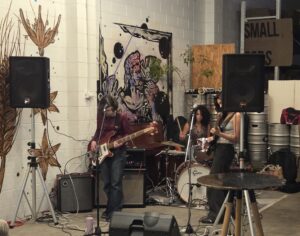 What stands out, dominates, drives the energy is the bass rhythms, Huia’s skills on her Rickenbacker bass almost mask a need for a second guitar. The riffs create a unique musical temperament for Groopchat. The last few (two) songs in their 20 minute-ish set tops off a clever buildup in the night’s novelette. There is a distinct psych vibe, sabbath darkness that leaves me seemingly interested in where they are headed, where/when a recording might be in the offering.