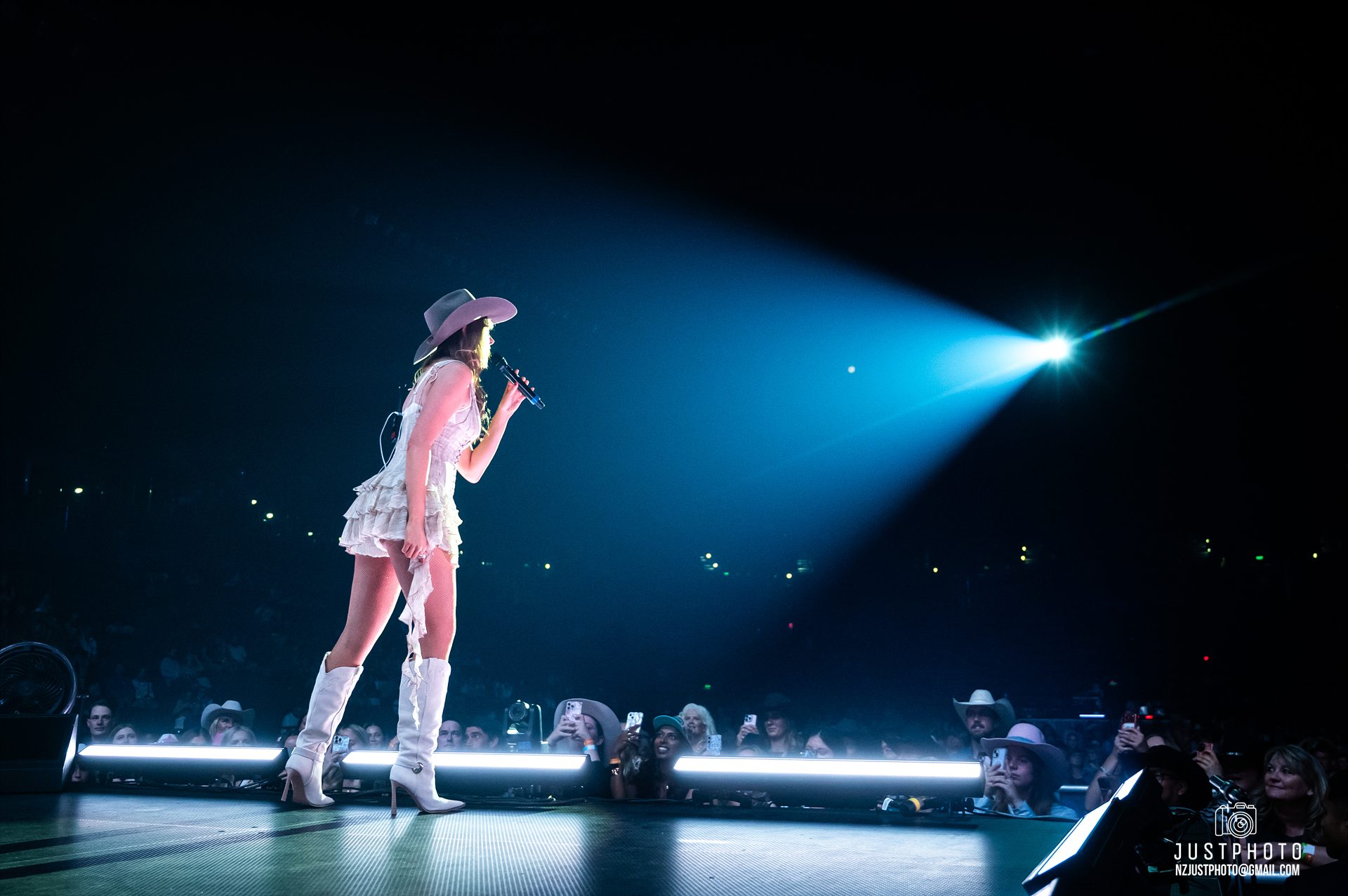 Indeed, the incoming crowd, particularly the females, were dressed in their Country-best…Cowboy boots, hat and accessories…in fact, there is a website that advises fans on what to wear to Lainey’s Whirlwind Tour…Opt for flared jeans or pants paired with a fringed top or a rhinestone-studded vest. Accessorize with oversized belt buckles and a wide-brimmed hat to complete the look.