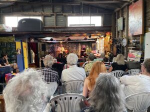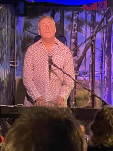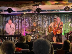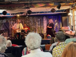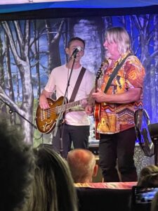 Highlights of the hour-long set included What’s So Good About The 60s and Floating In The River Of Time…both from The Dark Backward…along with I’m Listening To Merle Haggard Singing She Thinks I Still Care, an old chestnut written by his Sneaky Feelings band-mate David Pine and recorded by his other band, Death Ray Cafe.