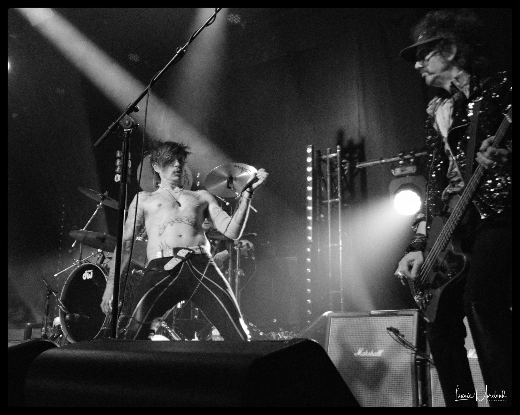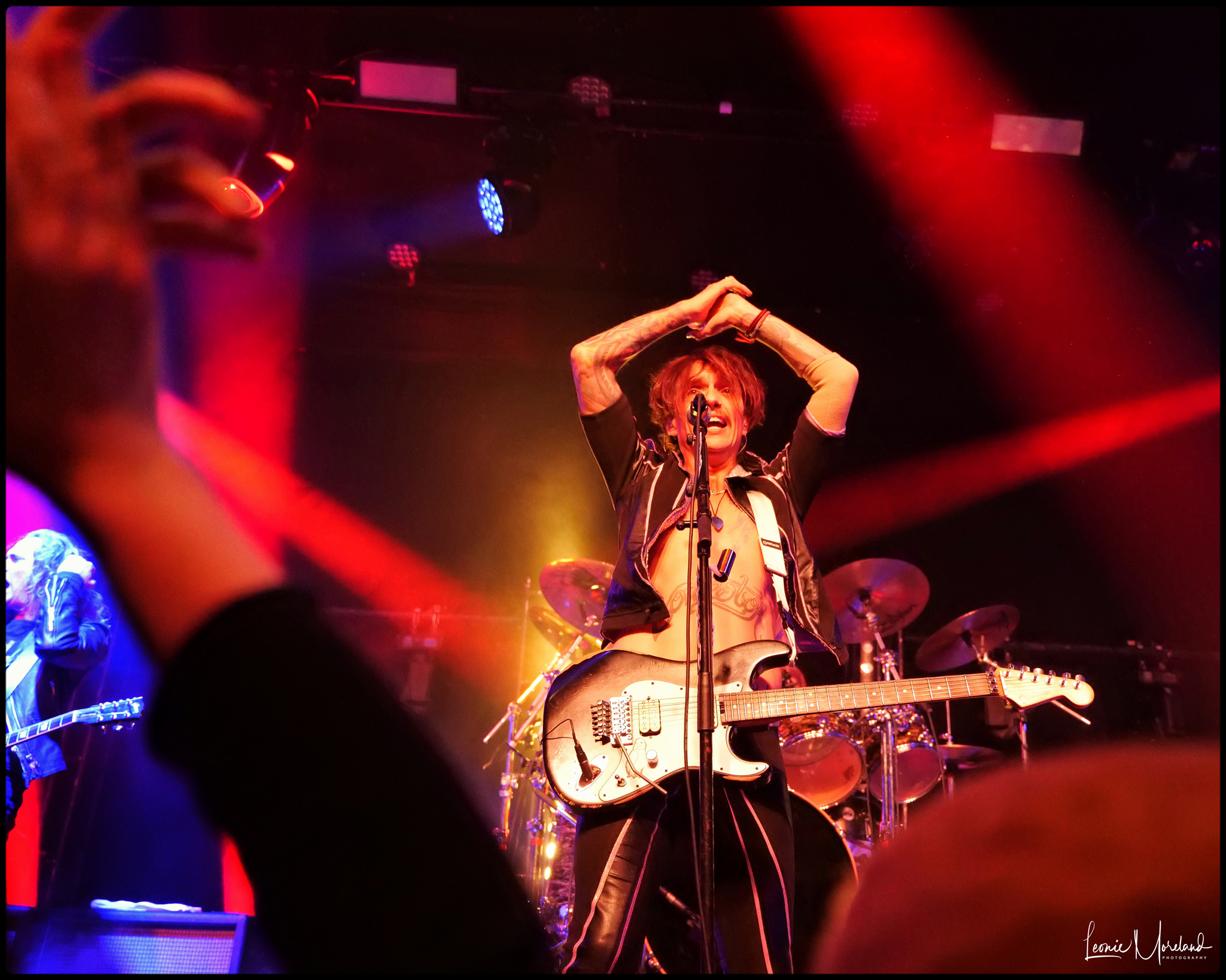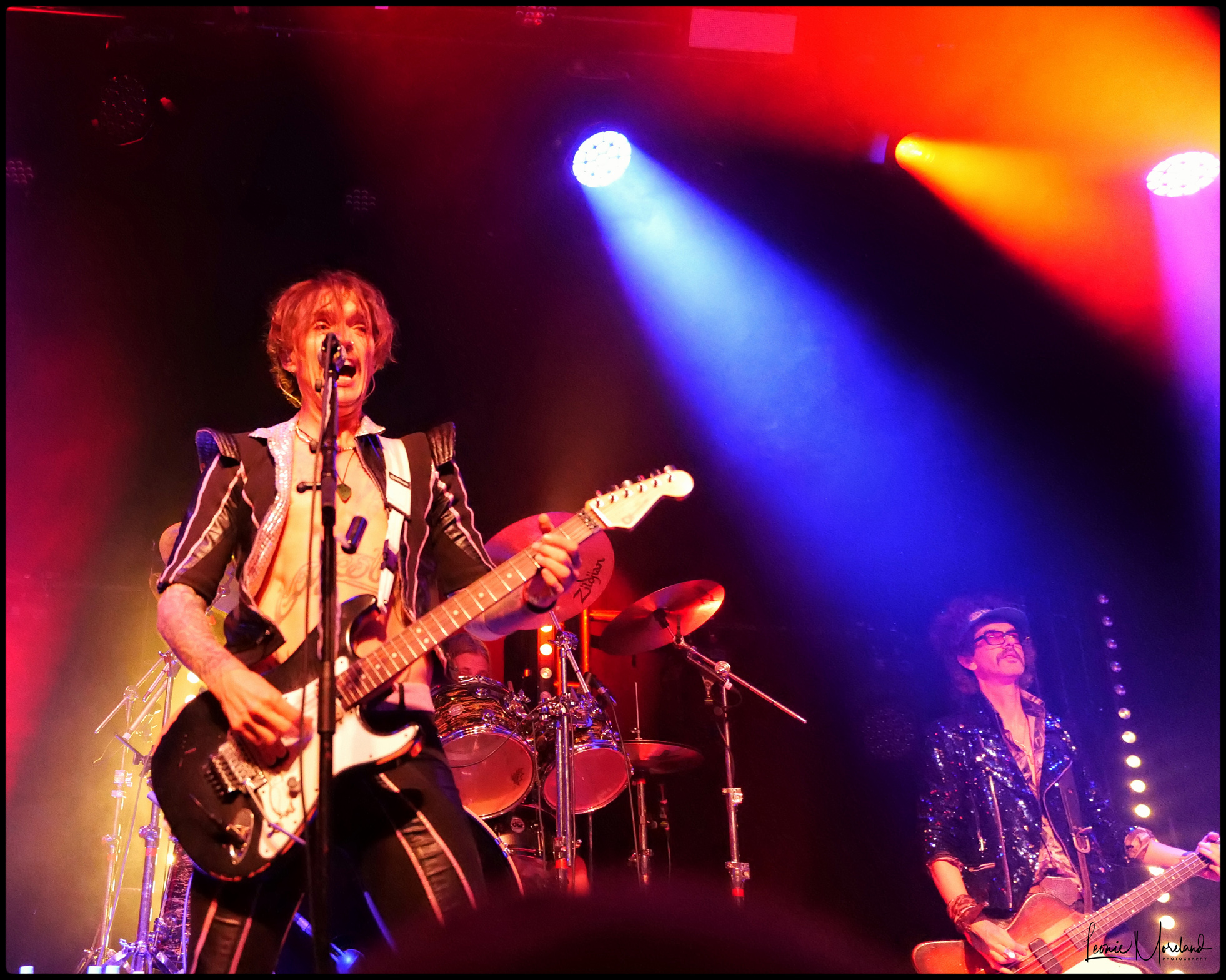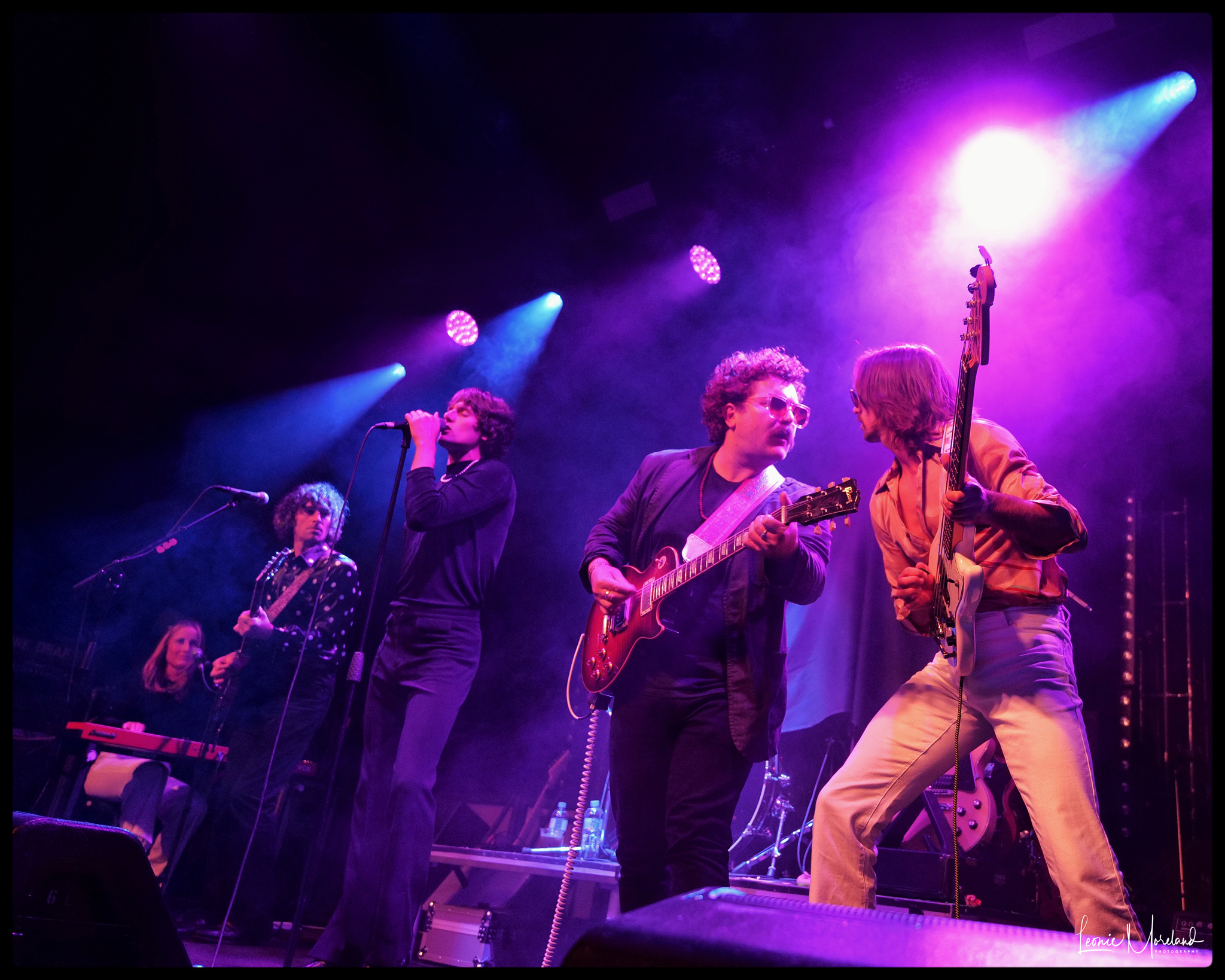 Zak Hawkins contrives to be a cool hybrid of Jim Morrison and Mick Jagger, owing both a lot in inspiration and influence. He’s a talented frontman and certainly has the chops for the job. Brother Jesse Hawkins keeps the energy high, he has a dynamic charisma that stands out on stage. The solid rock lead and rhythm guitars alternate between laid back and driving rhythm backed by Yoni Yahel’s drums. I can tell you Brad Craig is one of the guitarists, but the other remains a mystery despite my internet spying.