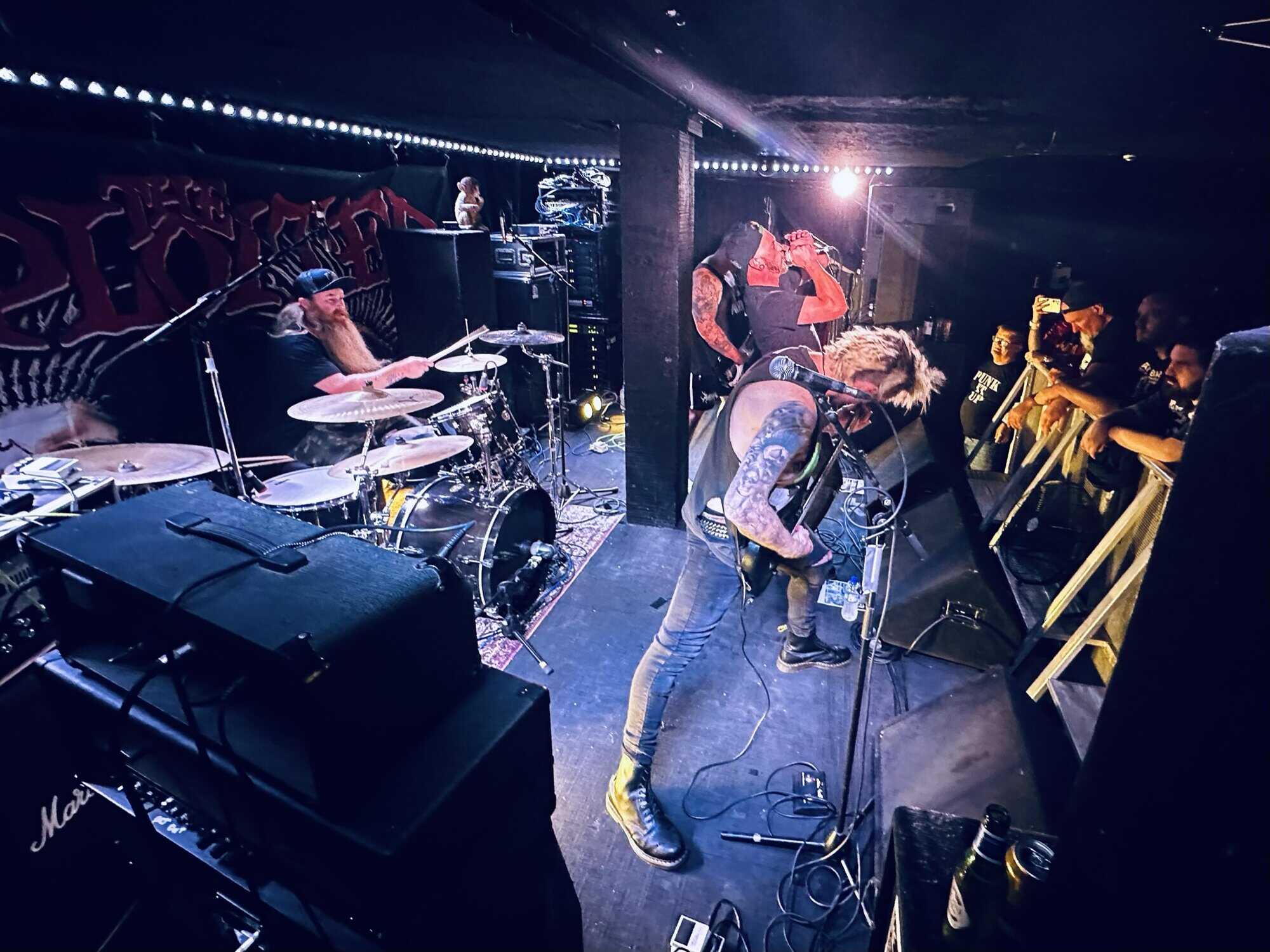 Whangaparaoa-based, Headroller have been around for almost a decade and had previously opened for The Exploited on the 2020 NZ tour. Much more metal than D.O.P., the drawl(ing) vocals and unrelenting sound bed at times made me feel like I was bashing my head against a brick wall continuously. Very much focused around vocals and guitar, their skills are obvious, but the lack of harmonic contrast did create a feeling of being battered by a monolithic sledgehammer. Their faithful fans were vocal in their support, but with their drummer supporting a bigger beard than the sound guy, being much, much, much more metal than D.O.P……..they could’ve (should’ve) been opening for Behemoth up the road.