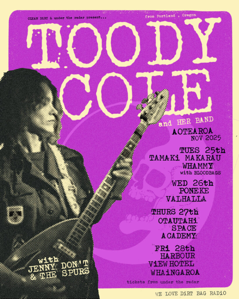 Dead Moon drummer Andrew Loomis once described the four string belter Toody Cole as “kicking ass and taking names” :  Lemmy cited her as one of his favourite bass players.  It’s now 33 years since she first visited Aotearoa with Dead Moon , the Portland band who famously turned down a Nirvana tour to honour a prior commitment to tour the motu.